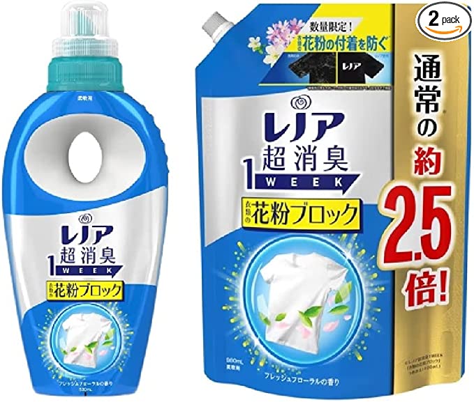 レノア 超消臭 1WEEK 柔軟剤 花粉ブロック フレッシュフローラルの香り 本体530ml+詰替980ml セット